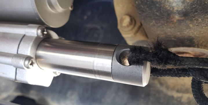 My first job was to work on the brake system for the telehandler. The boom was controlled by the CAN bus from the joystick, the throttle was controlled by a custom circuit interfacing with the shifter, and the steering wheel was rotated by a custom actuator, but we had no way to control the brakes. After diving deep into the hydraulic circuit of the JPG943 telehandler, I determined it was not worth the effort to try to actuate the brakes by augmenting the hydraulic system. Instead, I simply connected an electric linear actuator to a cable that would pull on the brake pedal. Since the cable could be pulled but not pushed, if an operator wanted to apply the brakes, they could push on the pedal and the cable would simply go slack. This acted as a physical OR gate, so the brake pedal could be pushed by an operator, or pulled by my actuator, but they would not interfere with eachother. The simple solution worked perfectly, with the caveat that the paracord I used as a cable got worn down over time.